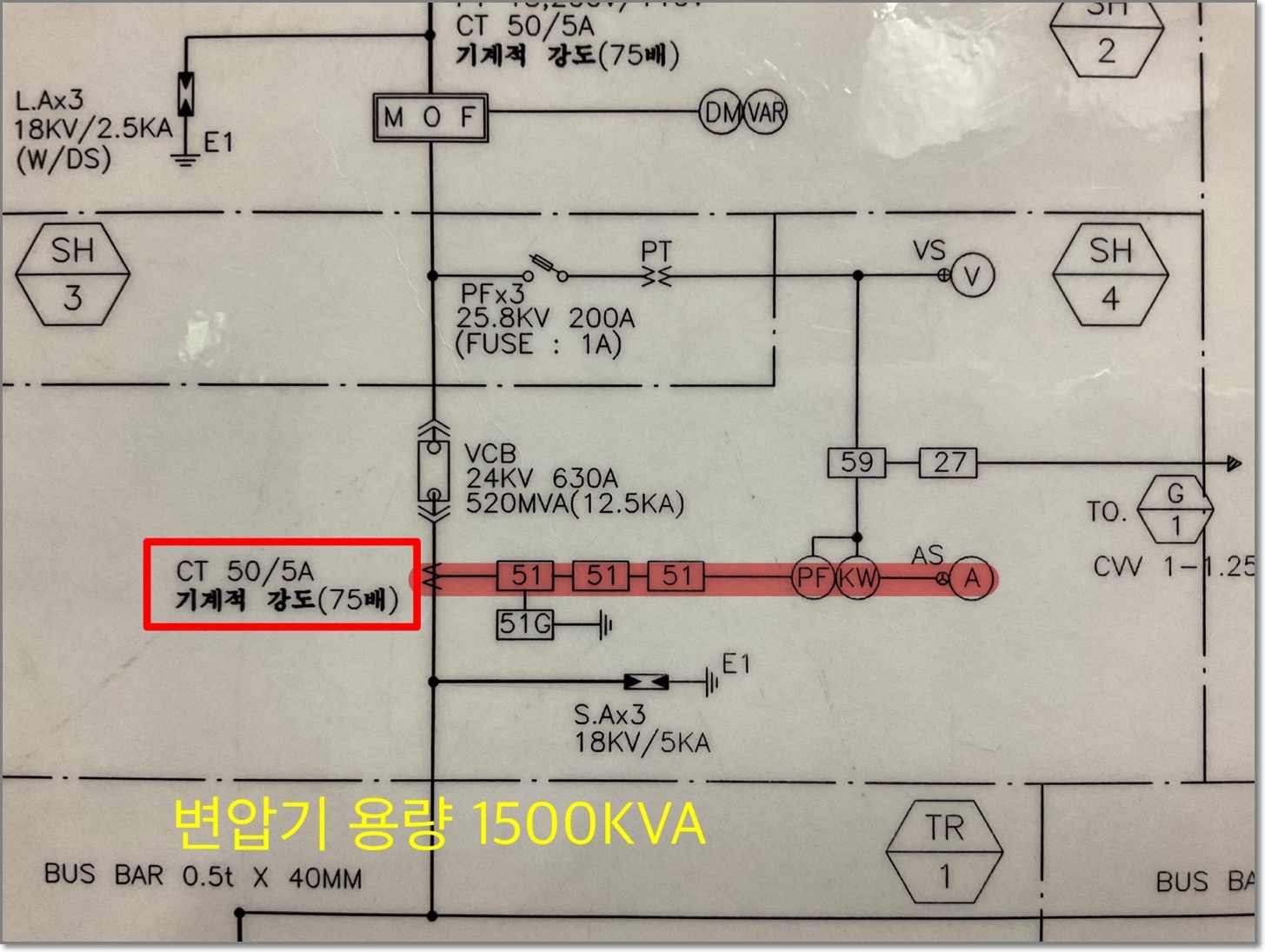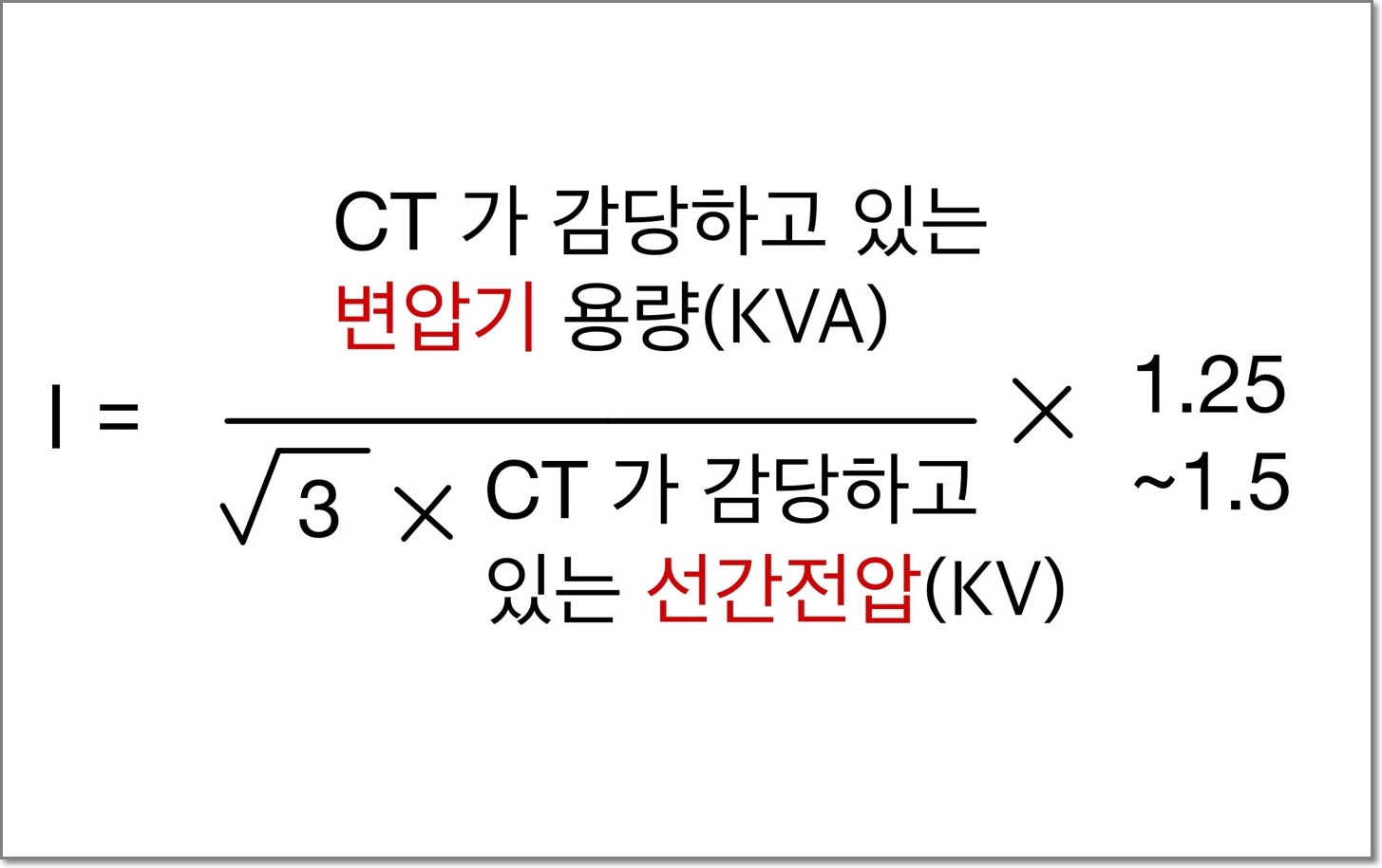 먼저 CT의 위치를 파악하고, CT 가 감당하고 있는 전압과 변압기 용량만 알게 되면 그다음은 쉽습니다. 1.25 ~ 1.5의 여유율을 곱해준 다음 CT의 정격 값을 암기하여 기록하면 됩니다.