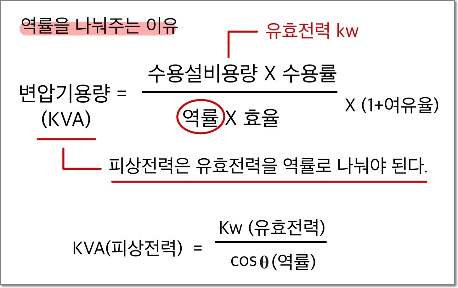 - 변압기용량(KVA) 에서 역률을 나눠주는 이유