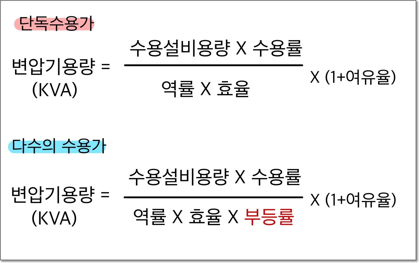 따라서 다수의 수용가 변압기용량을 산정할 땐 부등률이 포함되는 것입니다.